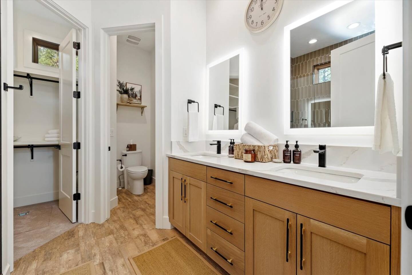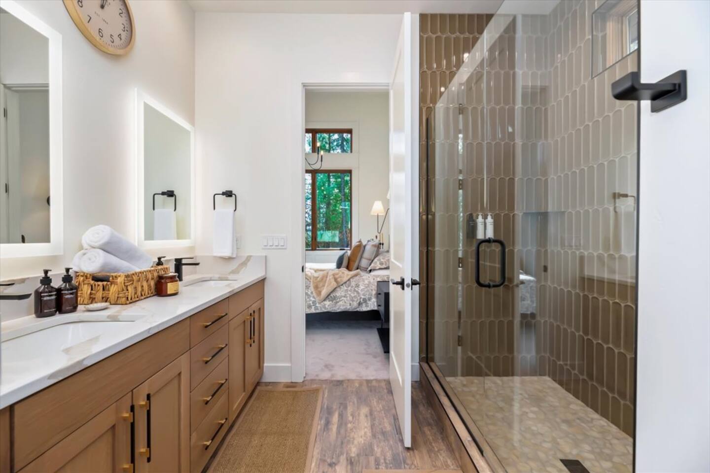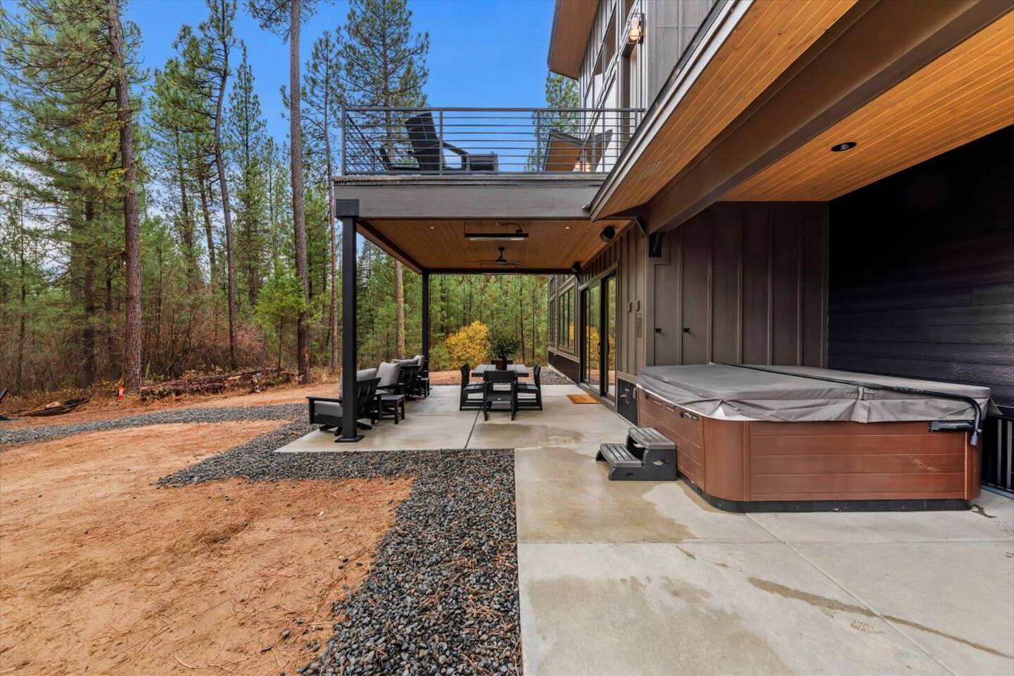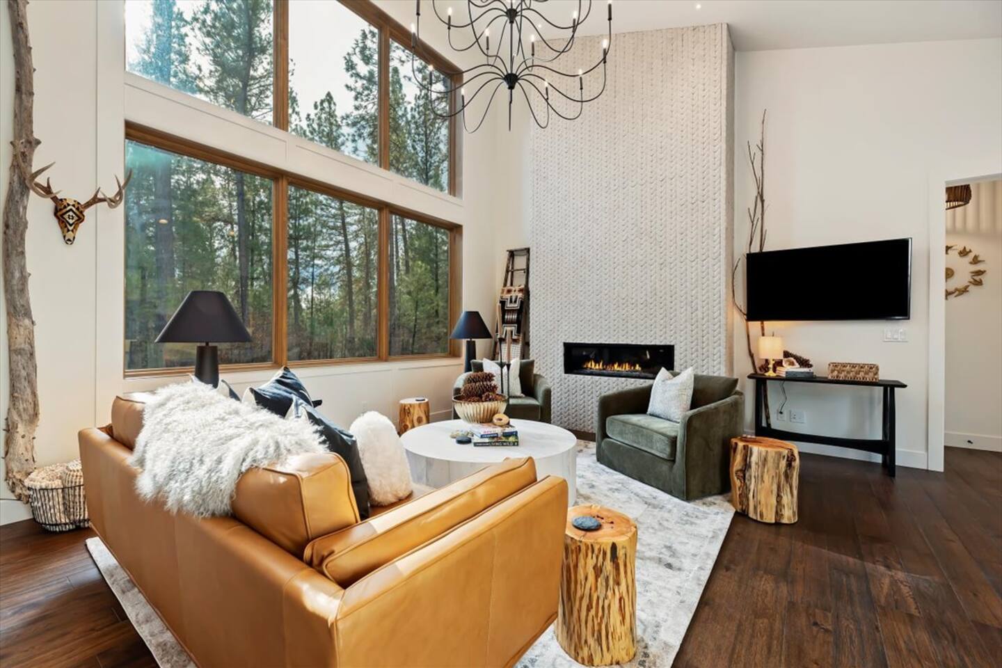 Nestled amidst the serene beauty of Garden Valley, this custom-designed 2,200-square-foot cabin with offers a luxurious escape from the ordinary. With three bedrooms and three and a half bathrooms, the home is designed for both intimate gatherings and spacious comfort. The interior is a harmonious blend of rustic charm and modern elegance. Soaring ceilings, expansive windows, and a cozy fireplace create an inviting atmosphere. The gourmet kitchen, complete with state-of-the-art appliances, is perfect for culinary adventures. Outside, the 3.2-acre property offers 1,000 square feet of decking including a terrace in the trees. A private hot tub, perfect for quiet sunrises, and a spacious deck are ideal for outdoor relaxation. Whether you're seeking tranquility or adventure, this Garden Valley retreat offers the best of both worlds.